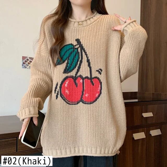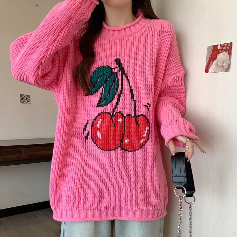 送料無料 アパレル プラスサイズ冬ルーズプリントチェリーセーター女性 Y2k 長袖クルーネックニットプルオーバートップスガールピンクジャンパー 4xl ロング 大きめサイズ ウィンター 冬物 AE122232227692122343 | mihatudai(みはつばい)ネットショッピングならmihatudai