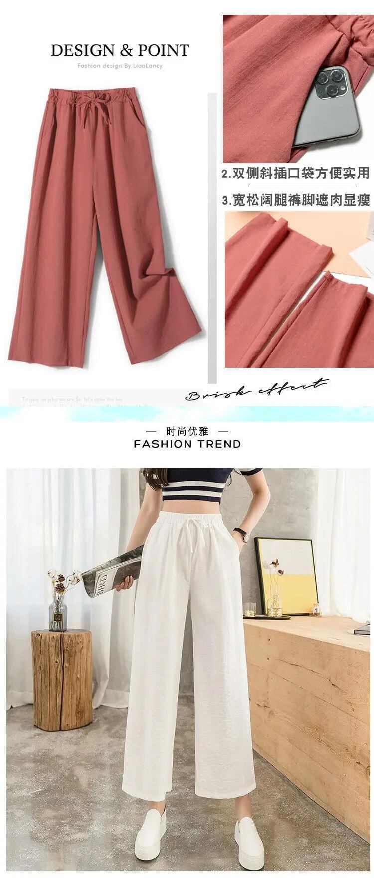 送料無料 アパレル 綿ラインワイドレッグパンツ女性の夏のウエスト 9 ポイントパンツ固体すべて一致だぶだぶのストリート コットン サマー 夏物 ワイドパンツ ソリッドカラー AE122232234283256764 | mihatudai(みはつばい)ネットショッピングならmihatudai