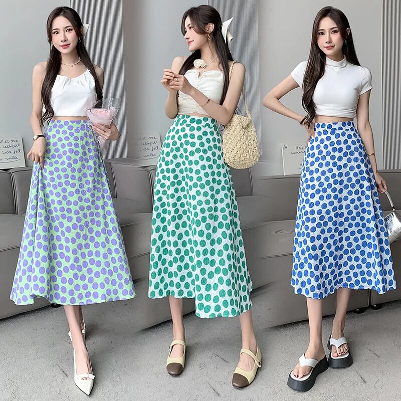 送料無料 アパレル ヴィンテージドットプリント A ラインロングスカート女性の夏の弾性ウエストシフォンスカートスリムフィット段 Faldas エラスティック 伸縮 サマー 夏物 Aライン ビンテージ AE122232298801571918 | mihatudai(みはつばい)ネットショッピングならmihatudai