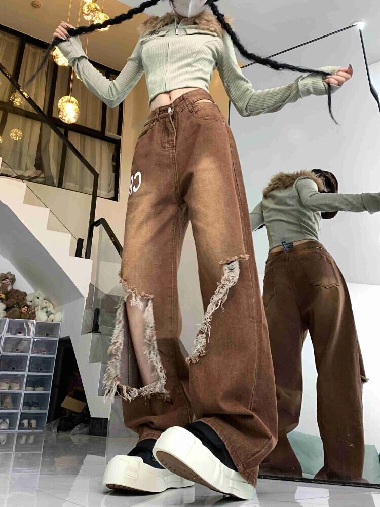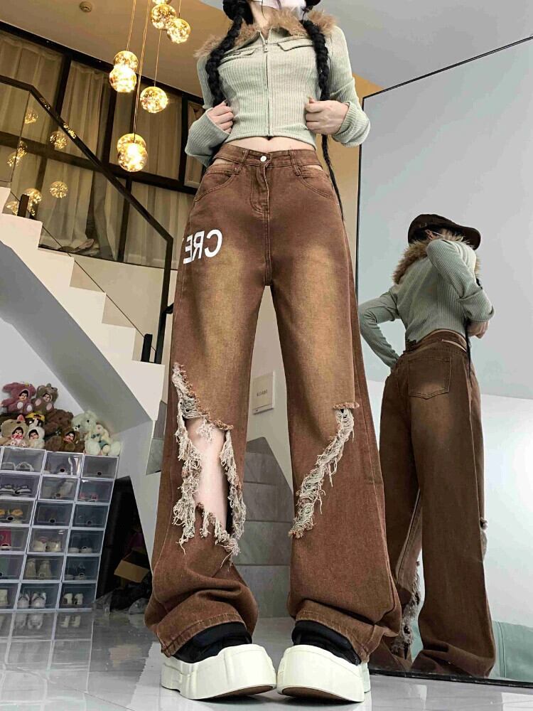 送料無料 アパレル 原宿中空アウトレタープリントデミンパンツ女性 Y2k グランジウエストリッピングジーンズセクシーガールワイドレッグストリートボトムス かわいい ワイドパンツ AE122232290726183907 | mihatudai(みはつばい)ネットショッピングならmihatudai