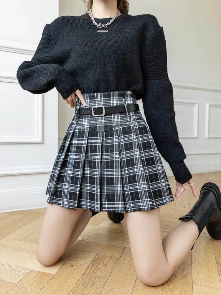 送料無料 アパレル JMPRS ヴィンテージプリーツ A L ラインスカートベルト付き女性ウエストチェック柄 Faldas プレッピースタイルダンススカート Y2k ハーネス ビンテージ AE122232255258008786 | mihatudai(みはつばい)ネットショッピングならmihatudai