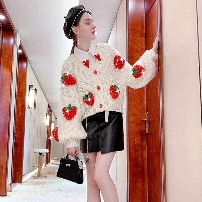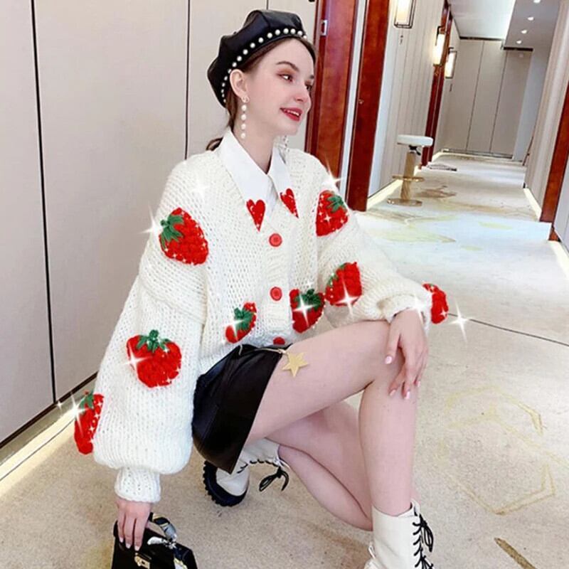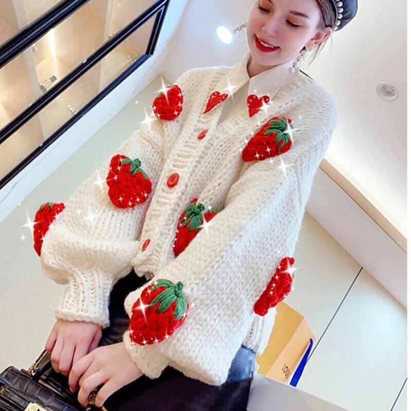 送料無料 アパレル JMPRS かわいいイチゴカーディガンセーター女性秋 2022 ルーズ V ネックハンド 3D ニットジャンパーコート 大人ガーリー スウィート キュート カジュアル Vネック AE122232276942997434 | mihatudai(みはつばい)ネットショッピングならmihatudai