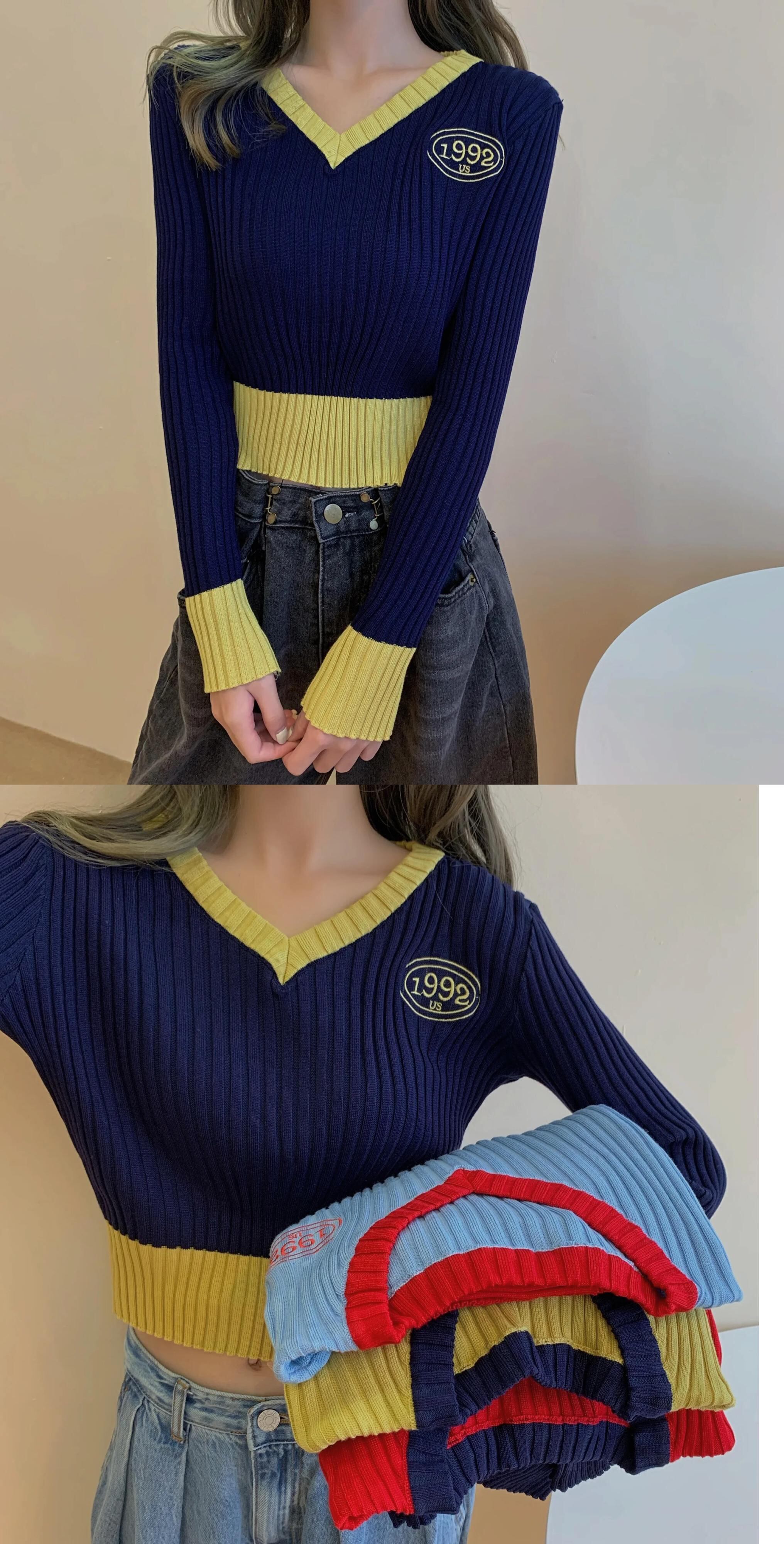 送料無料 アパレル JMPRS カラーパッチワーク V ネックセーター女性ヴィンテージ長袖ニットジャンパートップス手紙刺繍プルオーバー ロング Vネック ビンテージ AE12223226837189015 | mihatudai(みはつばい)ネットショッピングならmihatudai