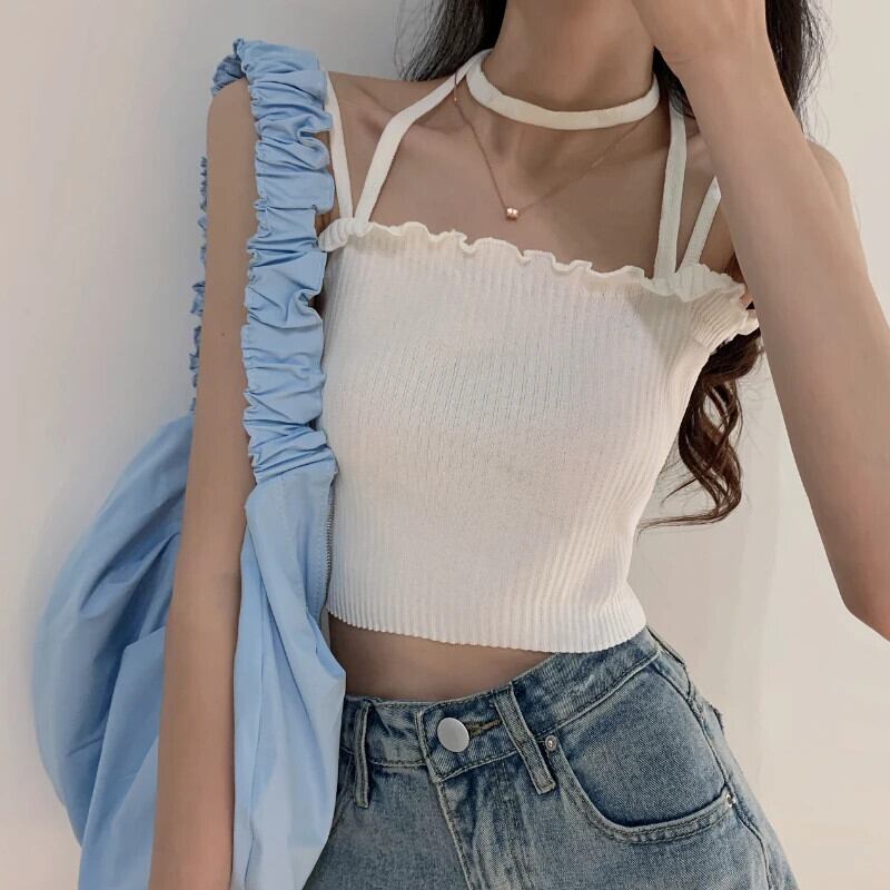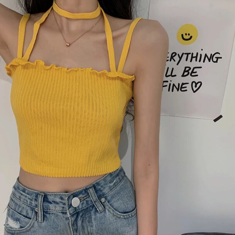 送料無料 アパレル ノースリーブホルターネッククロップドベストトップス女性の夏 2023 コルセットタンクセクシーなソリッドカラーのストリートニットキャミソール サマー 夏物 AE122232246974023923 | mihatudai(みはつばい)ネットショッピングならmihatudai