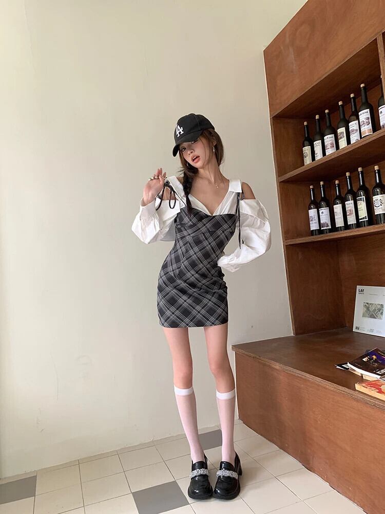 送料無料 アパレル 春夏 2024 偽ツーピースチェック柄ドレス女性のセクシーな中空アウト長袖パッチワークドレス Y2k シックな Badycon ショート Vestidos ロング スプリング 春物 サマー 夏物 AE12223224522565864 | mihatudai(みはつばい)ネットショッピングならmihatudai