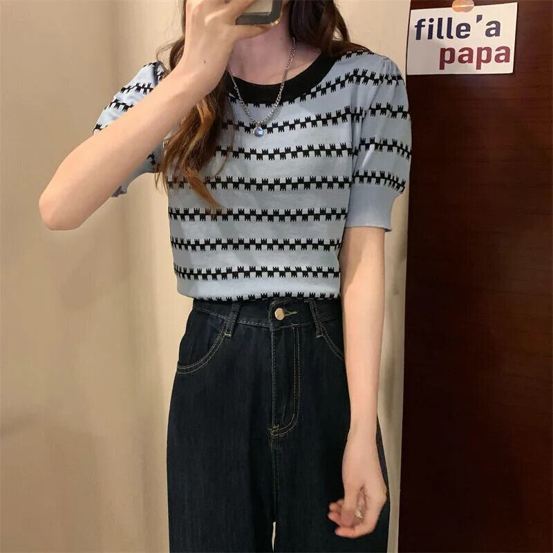 送料無料 アパレル JMPES 夏 2022 バージョンルーズで薄いストライプ半袖ニット T シャツ女性すべて一致 Y2k トップ サマー 夏物 Tシャツ AE122232266204247852 | mihatudai(みはつばい)ネットショッピングならmihatudai