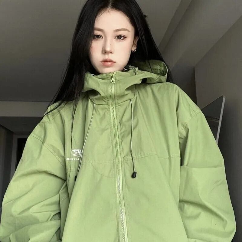 送料無料 アパレル Y2k 特大グリーンジャケット女性原宿人気のルーズコート生き抜く秋のフード付きジャケットストリート かわいい オータム 秋物 AE122232241756635453 | mihatudai(みはつばい)ネットショッピングならmihatudai