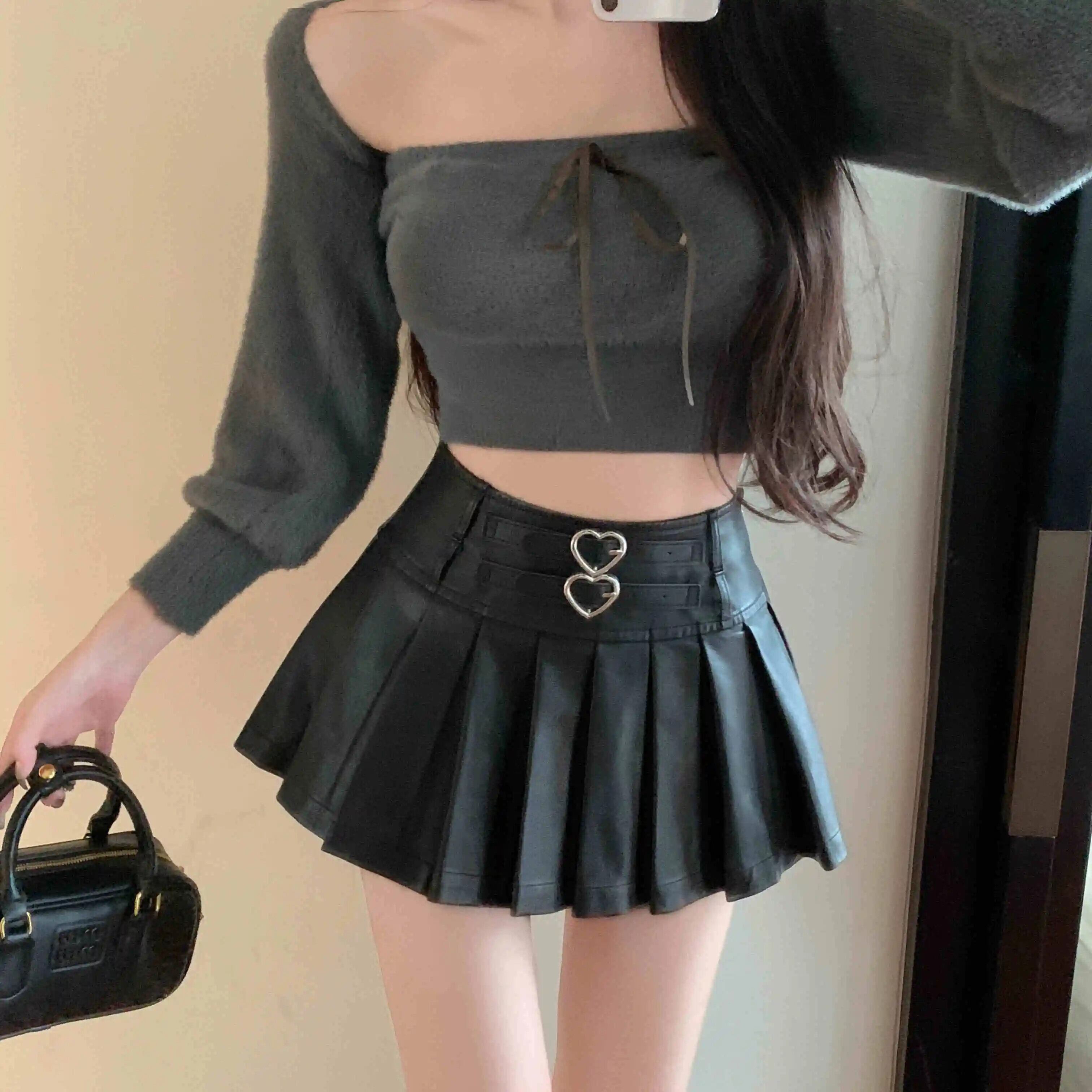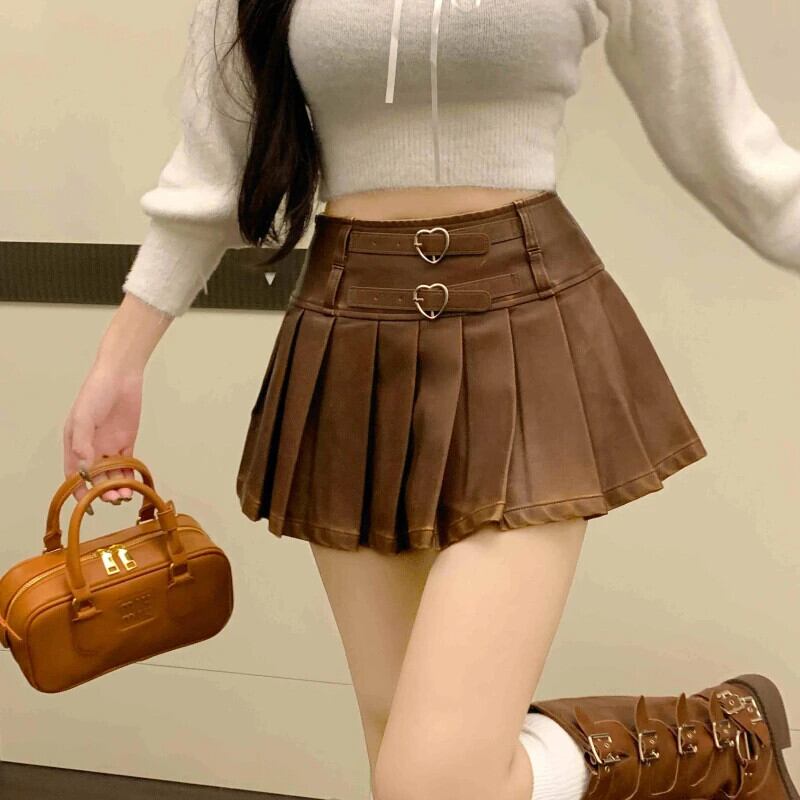 送料無料 アパレル ハートプレッピースタイル Pu スカート女性 Y2k ウエストプリーツミニスカート原宿セクシーな A ライン段段 Faldas かわいい AE122232231785315644 | mihatudai(みはつばい)ネットショッピングならmihatudai
