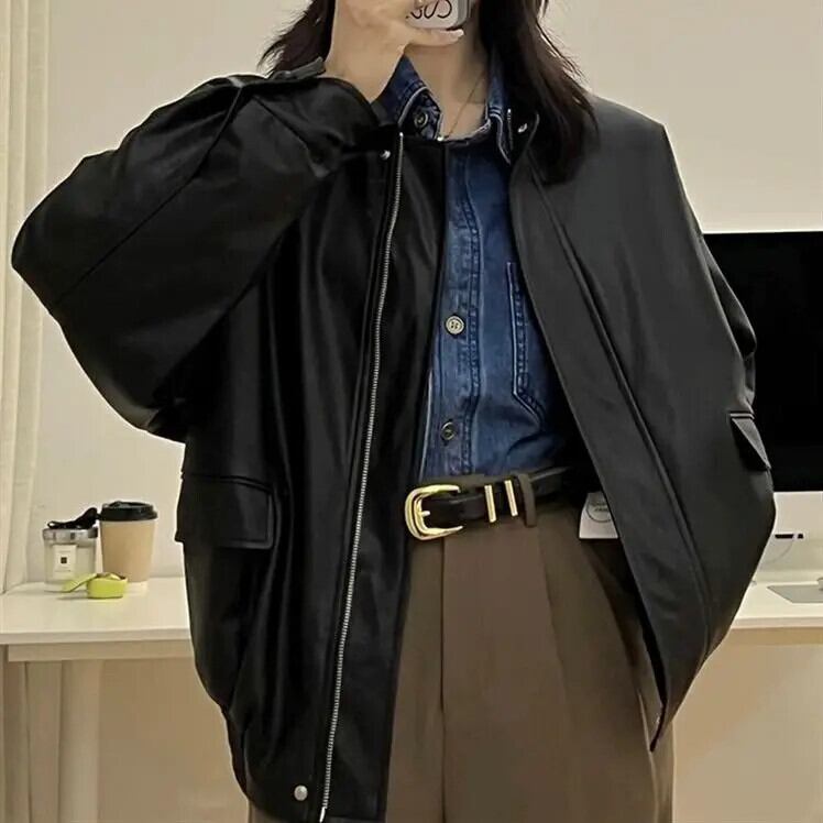 送料無料 アパレル アメリカンレトロ Pu レザージャケット女性秋春ルーズターンダウンカラーコートモトバイカー生き抜くトップス スプリング 春物 AE12223222135695891 | mihatudai(みはつばい)ネットショッピングならmihatudai