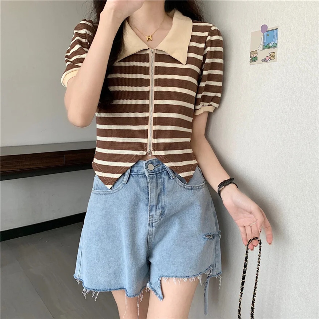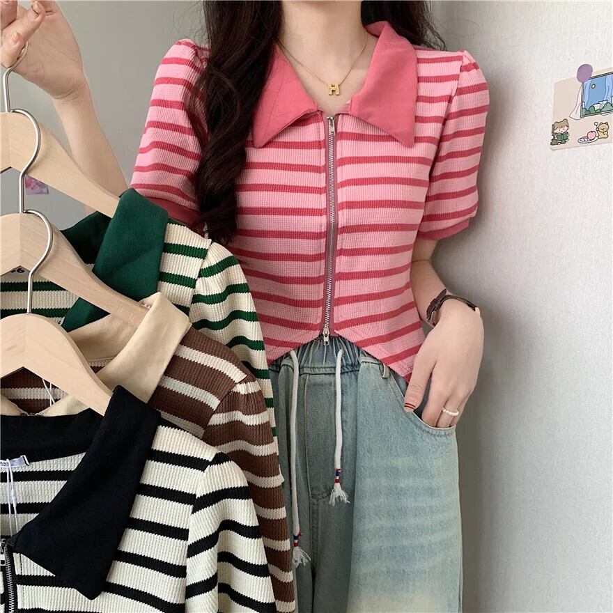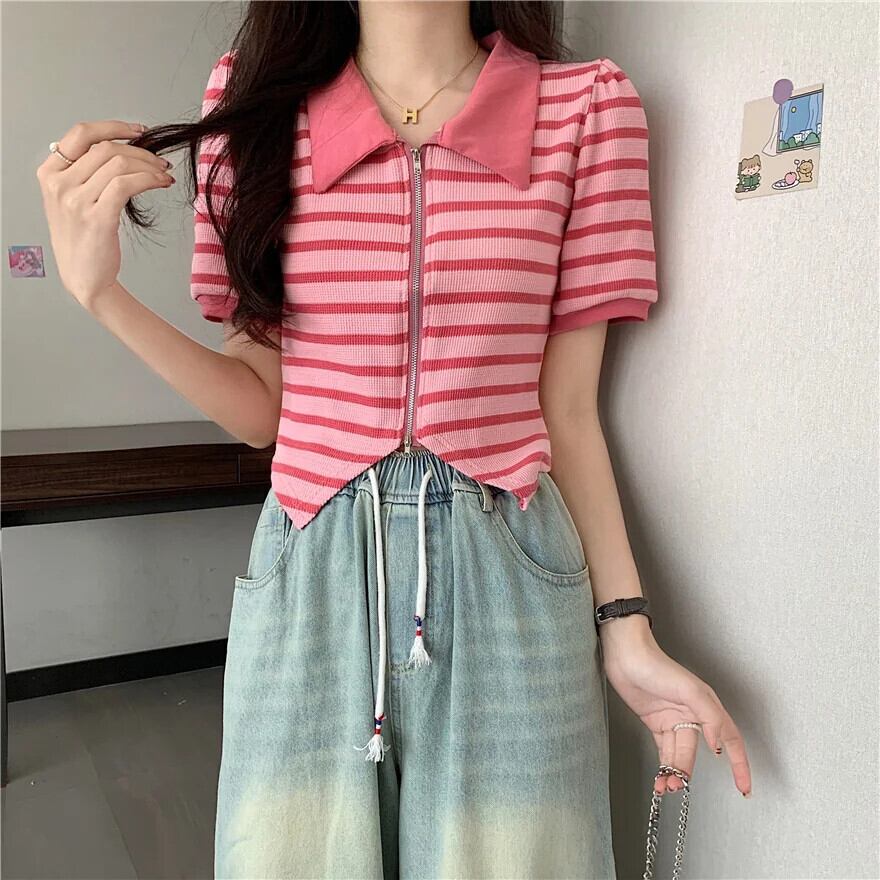 送料無料 アパレル レトロストライプ Kintted Tシャツ女性甘いポロ襟 Tシャツ夏 2023 Y2k スリムフィットトップスストリート原宿 大人ガーリー スウィート キュート カジュアル かわいい サマー 夏物 AE122232295855166468 | mihatudai(みはつばい)ネットショッピングならmihatudai