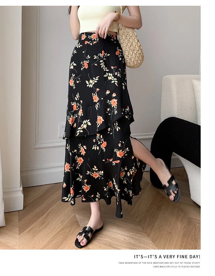 送料無料 アパレル 花シフォンロングスカート女性の夏 2023 スタイルスリットトランペットスカートフリルホリデービーチ段段 ラッフル サマー 夏物 花柄 AE122232289764867193 | mihatudai(みはつばい)ネットショッピングならmihatudai