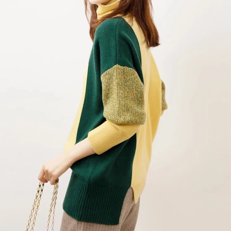 送料無料 アパレル ウールタートルネックセーターWemnカラーコントラストニットジャンパー秋冬ルーズ長袖プルオーバートップス ロング ウィンター 冬物 AE122232247485017750 | mihatudai(みはつばい)ネットショッピングならmihatudai