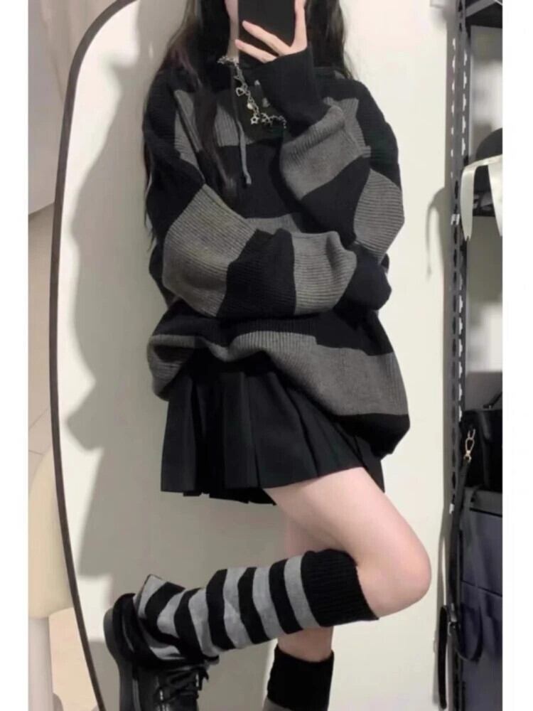 送料無料 アパレル スタイルフード付きニットセーター女性秋冬ストライプルーズ長袖ジャンパー Y2k 原宿だぶだぶストリートトップス ロング かわいい ウィンター 冬物 AE122232234138924272 | mihatudai(みはつばい)ネットショッピングならmihatudai