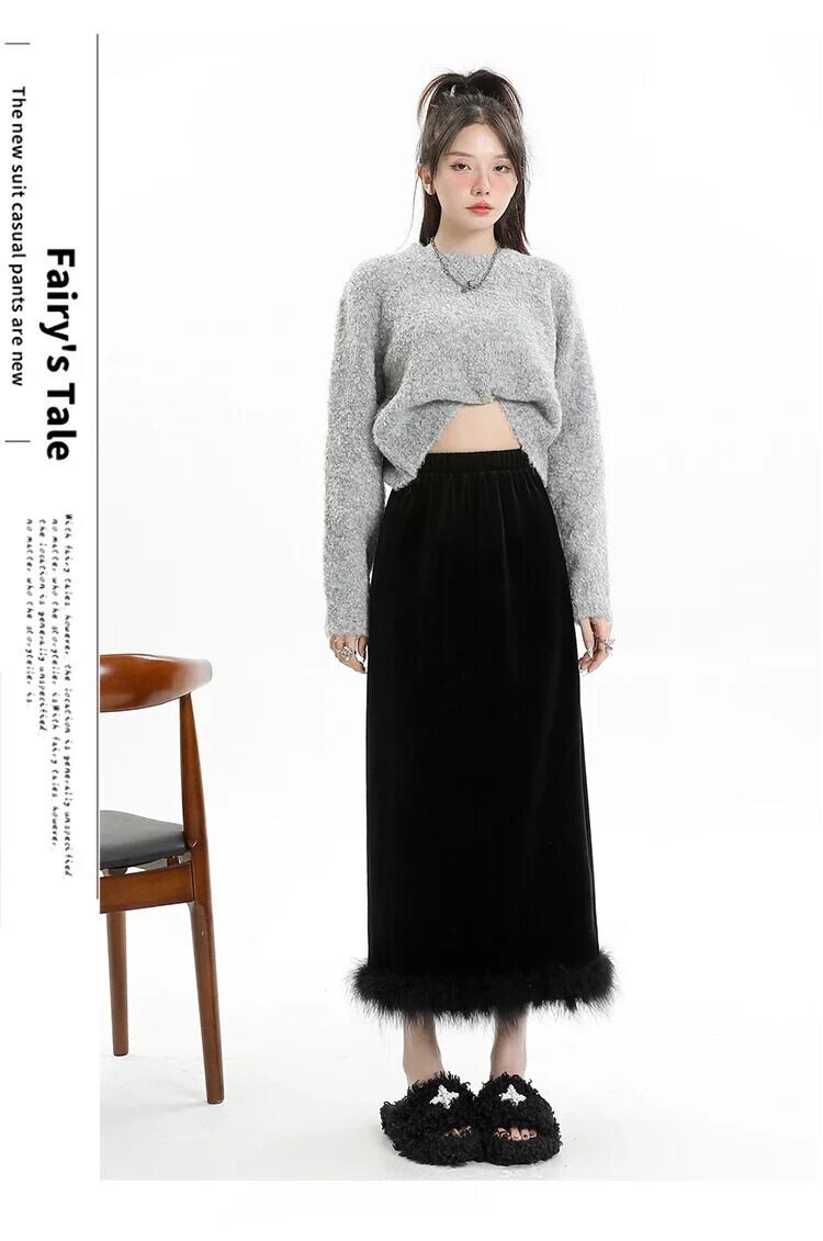 送料無料 アパレル 黒ベルベットふわふわ厚いスカート女性秋冬ウエスト分割ワンステップスカート羽 Balck 段 Faldas ブラック ウィンター 冬物 AE122232274655290788 | mihatudai(みはつばい)ネットショッピングならmihatudai