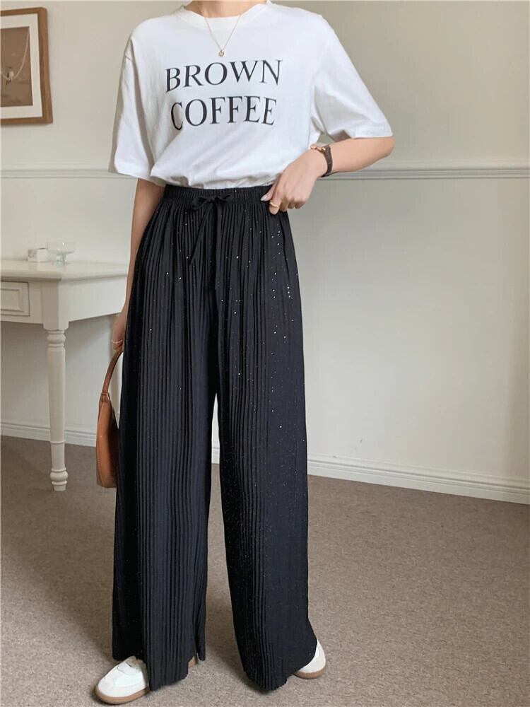 送料無料 アパレル JMPRS ウエストドレーププリーツパンツ女性明るい光沢のあるワイドレッグパンツストレートルーズストリート女性 AE122232224108578542 | mihatudai(みはつばい)ネットショッピングならmihatudai