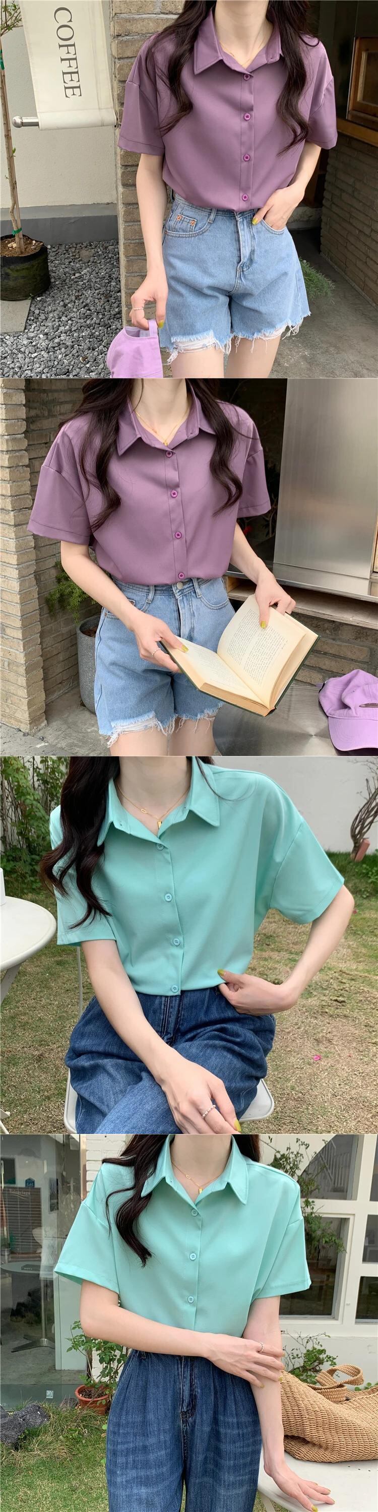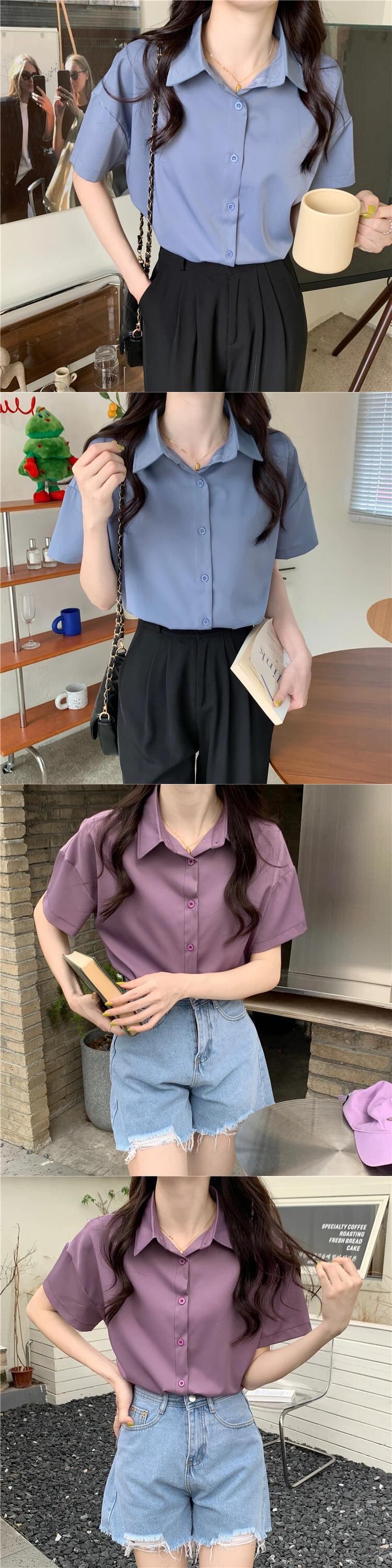 送料無料 アパレル JMPRS ノッチカラー半袖シャツ女性の夏 2022 シャツ固体トップス サマー 夏物 ソリッドカラー AE122232223329933102 | mihatudai(みはつばい)ネットショッピングならmihatudai