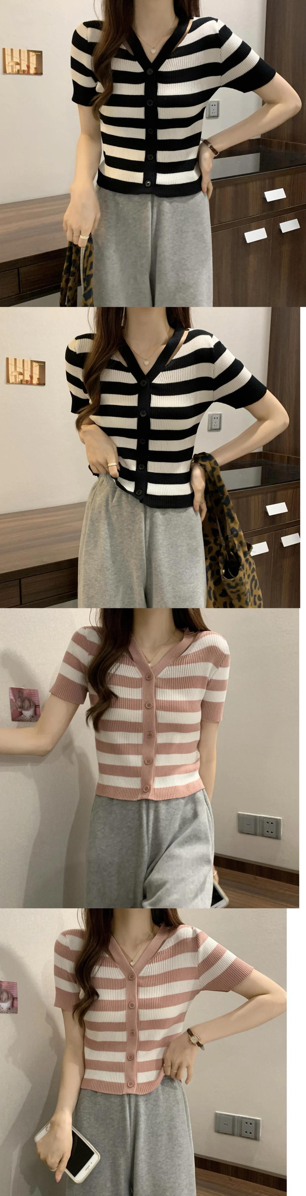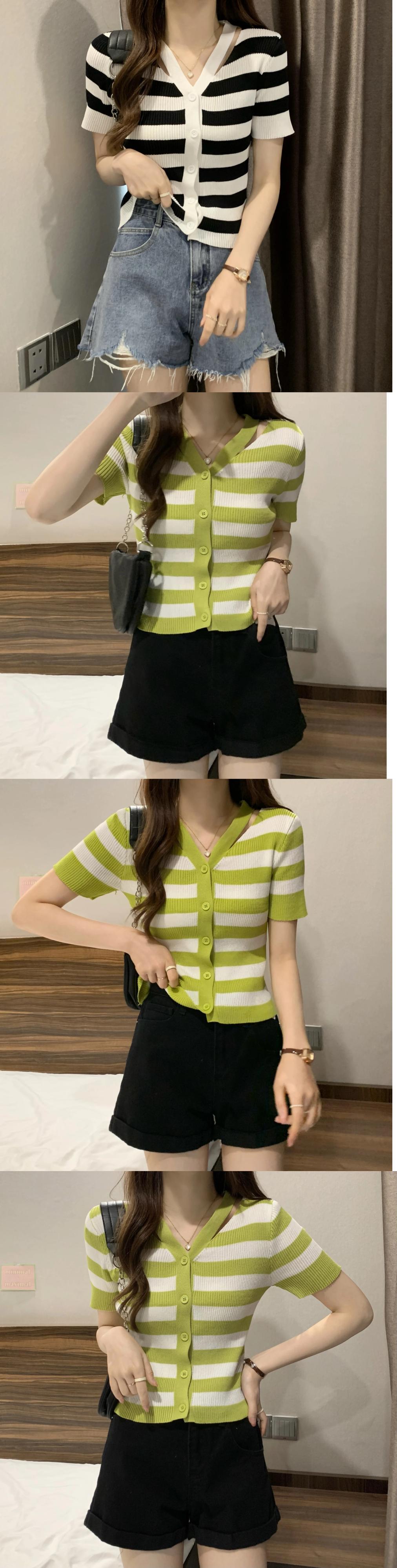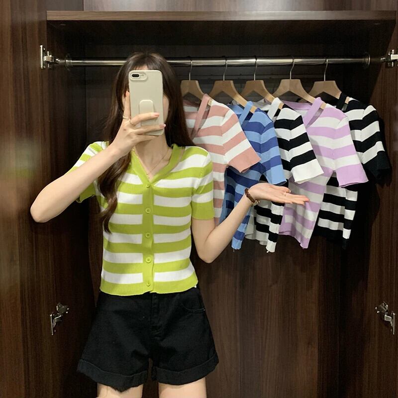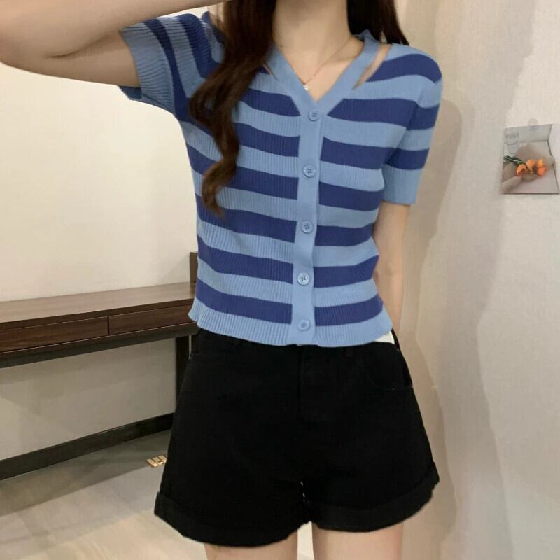 送料無料 アパレル JMPRS パッチワークカラーストライプ半袖ニット Tシャツ女性 V ネッククロップドトップス中空アウト生き抜く Vネック AE122232261887292111 | mihatudai(みはつばい)ネットショッピングならmihatudai