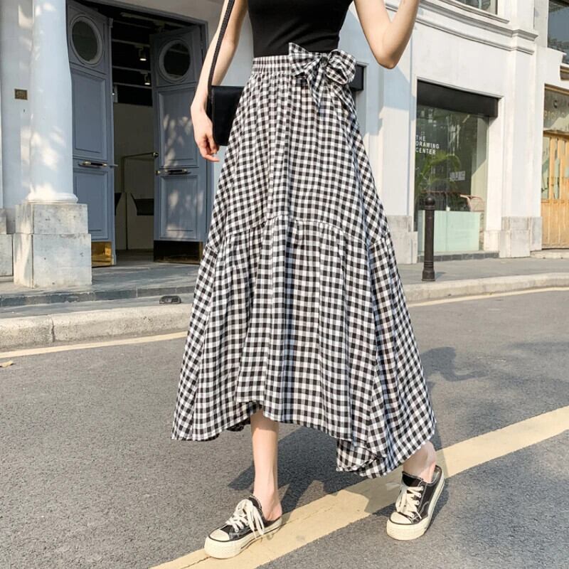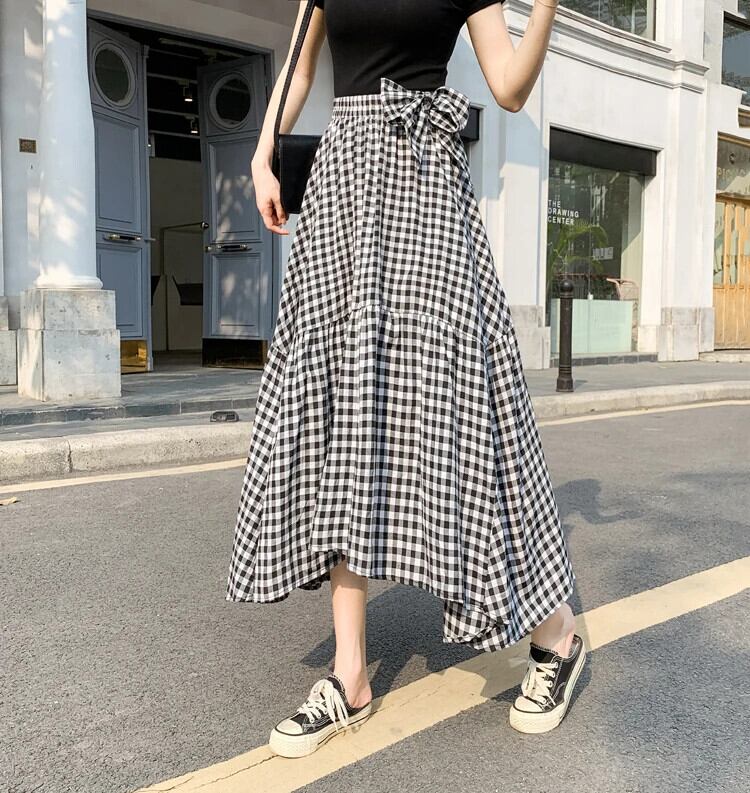 送料無料 アパレル JMPRS -ウエストチェック柄プリーツスカート女性ヴィンテージ弓ミディスカート不規則な A ラインロング段 Faldas リボン Aライン ビンテージ AE122232213175746568 | mihatudai(みはつばい)ネットショッピングならmihatudai