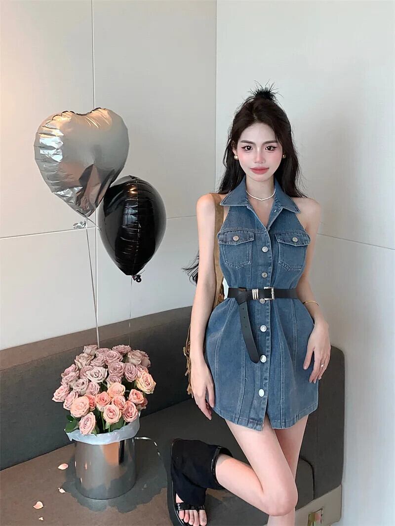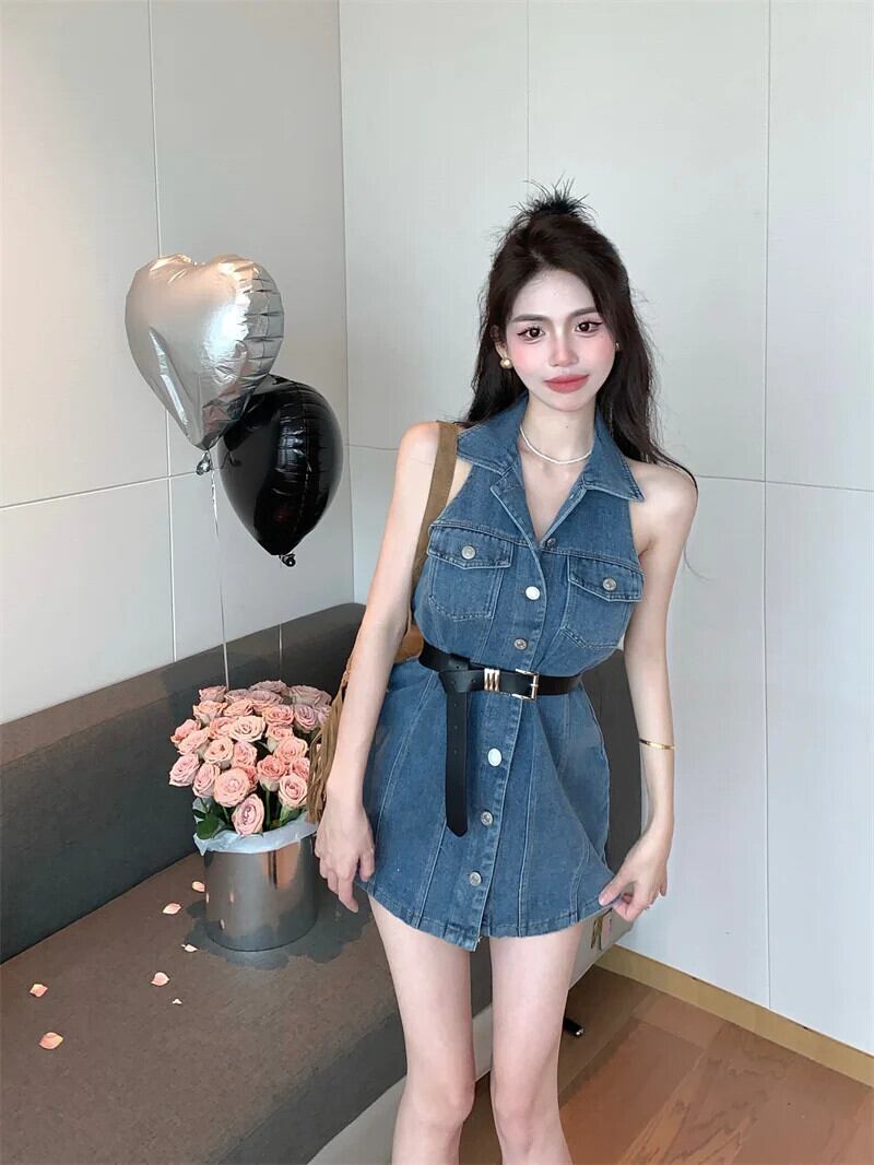 送料無料 アパレル アメリカンレトロウォッシュブルージーンズドレスベルト付き女性シングルブレストデニムドレス Y2k ノースリーブ Vestidos ハーネス AE122232222908533712 | mihatudai(みはつばい)ネットショッピングならmihatudai