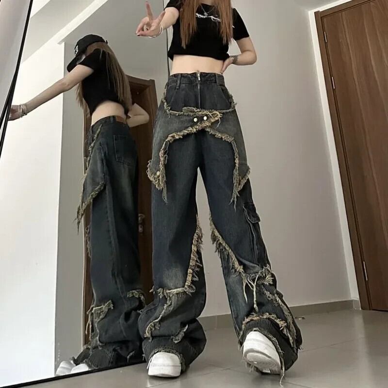送料無料 アパレル ヴィンテージ電話ジーンズ女性ウエスト秋ストレートパンツヒップホップ Y2k ワイドレッグデニムパンツストリート オータム 秋物 ワイドパンツ ビンテージ AE122232275545671986 | mihatudai(みはつばい)ネットショッピングならmihatudai