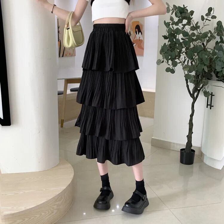 送料無料 アパレル バージョンプリーツフリル黒スカート女性の夏 2023 フェアリーコア A ライン弾性ウエストロングスカート段 Faldas Y2k ブラック エラスティック 伸縮 サマー 夏物 Aライン AE122232278564025135 | mihatudai(みはつばい)ネットショッピングならmihatudai
