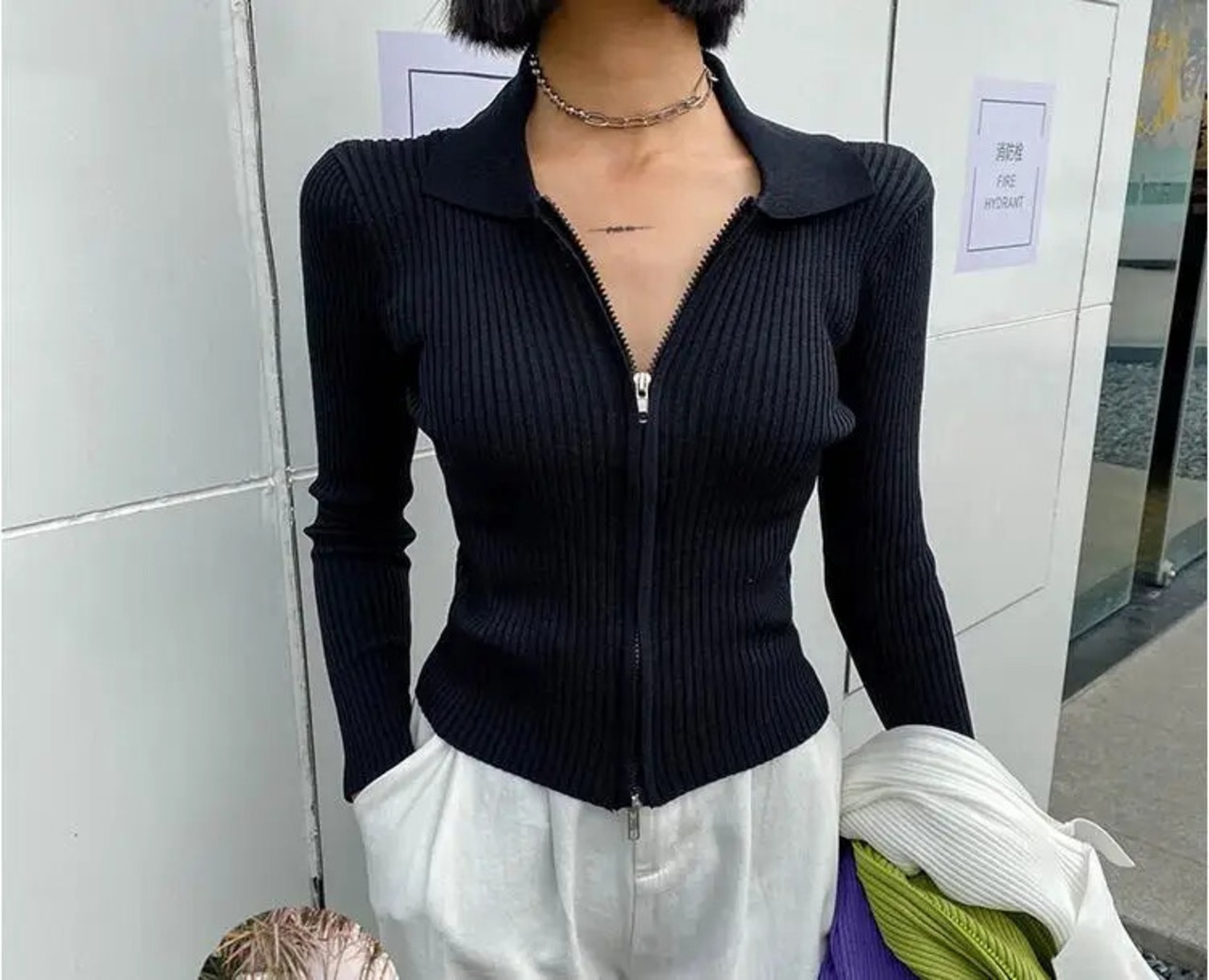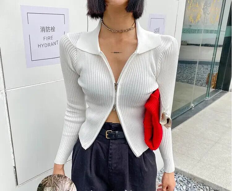 送料無料 アパレル ジッパーデザインカーディガン女性 2021 秋春セクシーなクロップドセーター長袖スリムフィットニットトップス ロング スプリング 春物 AE122232269233460237 | mihatudai(みはつばい)ネットショッピングならmihatudai