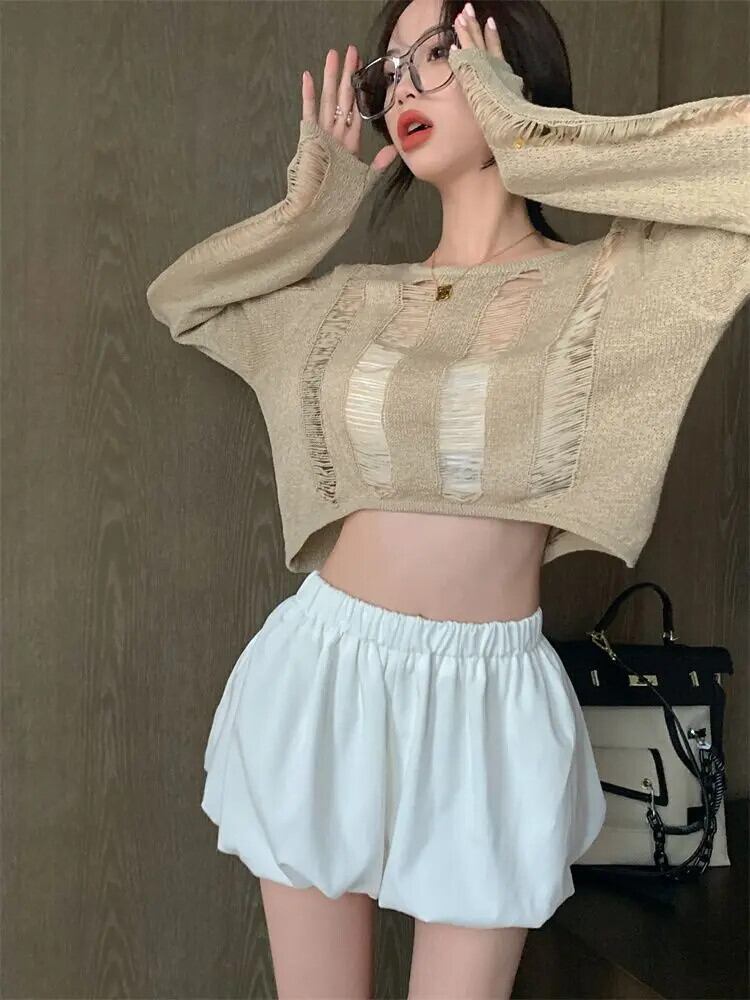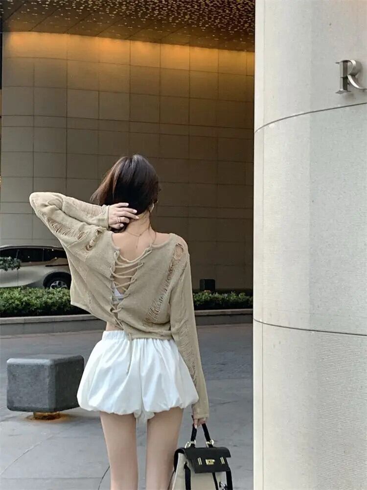 送料無料 アパレル Y2k グランジ中空ニットトップス女の子セクシーな日焼け止め長袖セーター女性原宿巾着 2 サイド着用ジャンパー ロング かわいい AE122232219298013976 | mihatudai(みはつばい)ネットショッピングならmihatudai