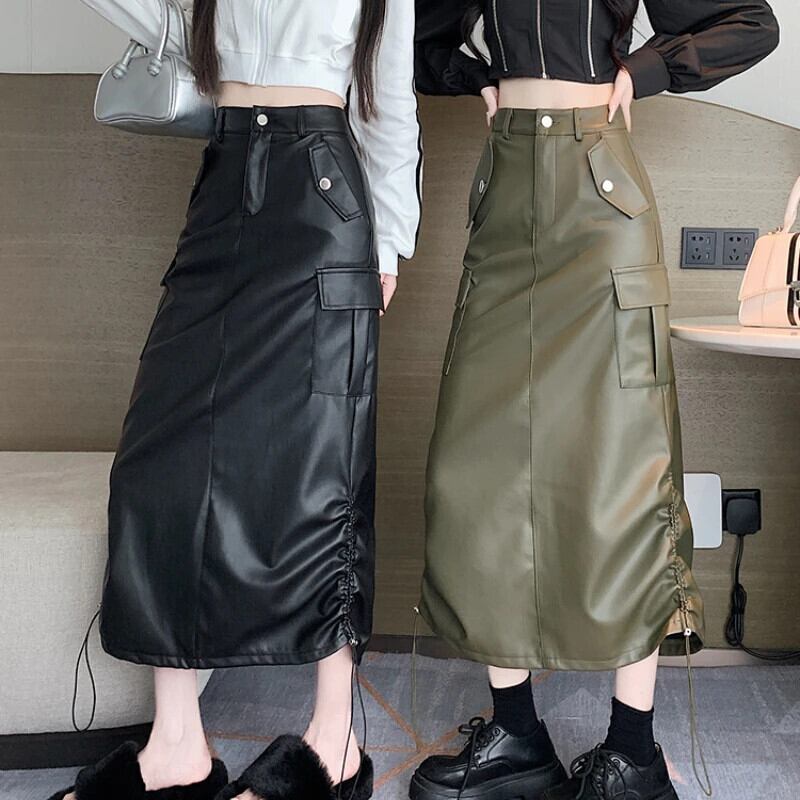 送料無料 アパレル アメリカンレトロ Pu レザースカート女性秋ウエストビッグポケットカーゴスカート Femle スリット Drawsting ロング段 Faldas AE122232218942979869 | mihatudai(みはつばい)ネットショッピングならmihatudai