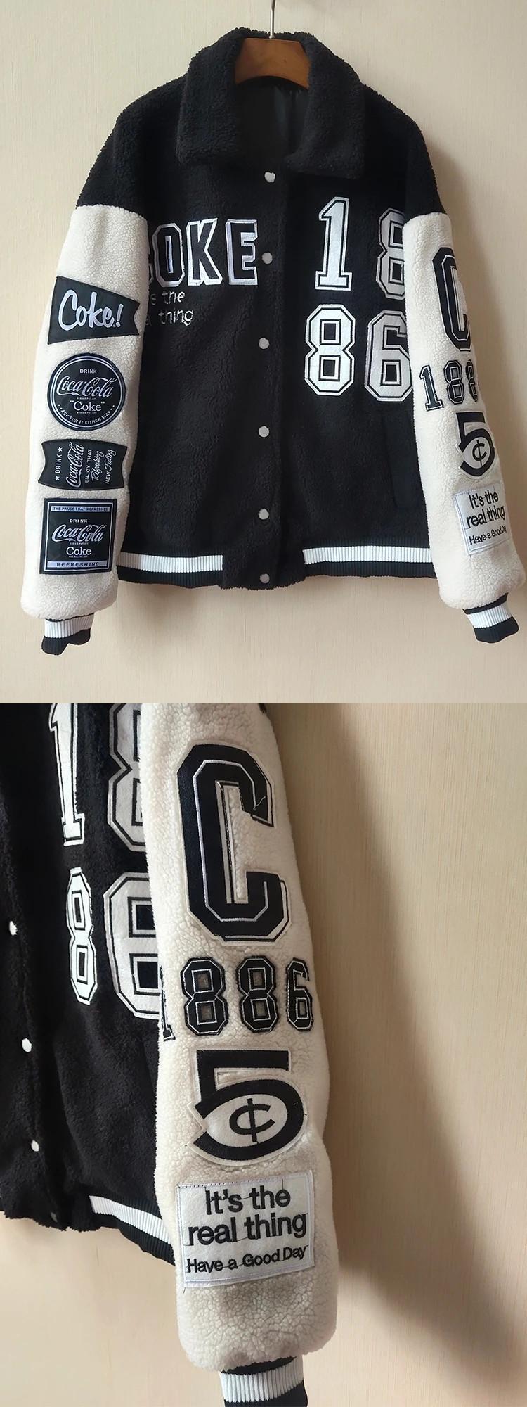 送料無料 アパレル 冬秋 2021 フェイクラムズウールクロップドジャケット女性手紙パッチのカラーブロック野球ジャケット ウィンター 冬物 ファー AE122232261019905967 | mihatudai(みはつばい)ネットショッピングならmihatudai