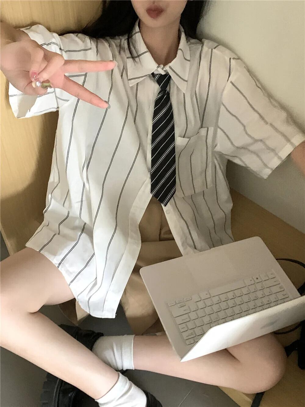 送料無料 アパレル 夏のプレッピースタイルストライプシャツとネクタイ女性スタイル半袖オールマッチトップス Y2k 原宿ガールブラウス服 2023 ショート ハーフスリーブ かわいい サマー 夏物 AE122232227329838617 | mihatudai(みはつばい)ネットショッピングならmihatudai