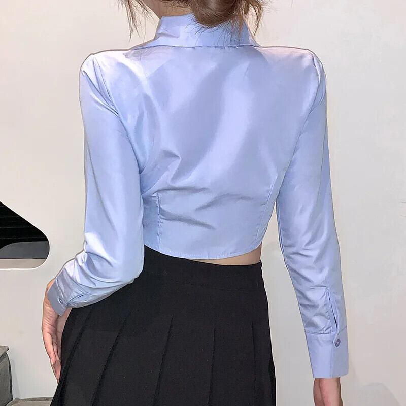 送料無料 アパレル 年齢を減らすひだ長袖シャツヨーロッパとアメリカの V ネックスリムフィットクロップドトップスガールブラックショートブラウス ロング Vネック AE122232247452274050 | mihatudai(みはつばい)ネットショッピングならmihatudai