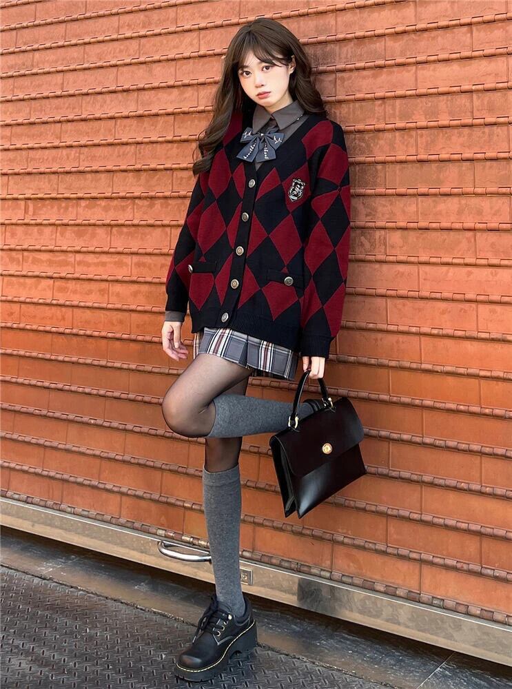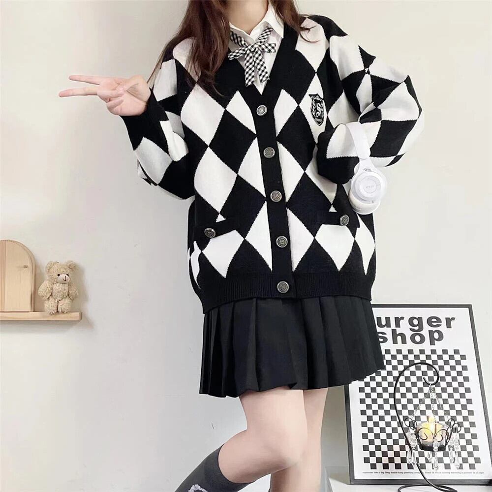 送料無料 アパレル JK スタイルカーディガン女の子アーガイル柄セーター女性 Y2k シングルブレストニットトップス AE122232211711821015 | mihatudai(みはつばい)ネットショッピングならmihatudai