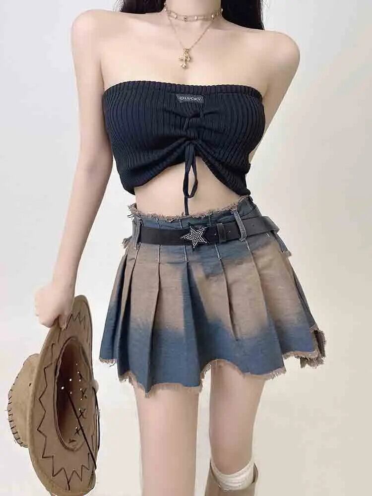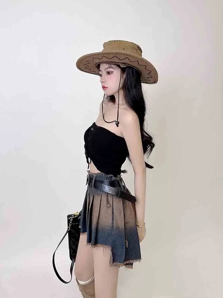 送料無料 アパレル セクシーなローウエストワンピースデニムスカート女性グランジパンク不規則なプリーツスカートホットガールズ Y2k タイダイ包帯段段 Faldas AE12223221829919922 | mihatudai(みはつばい)ネットショッピングならmihatudai