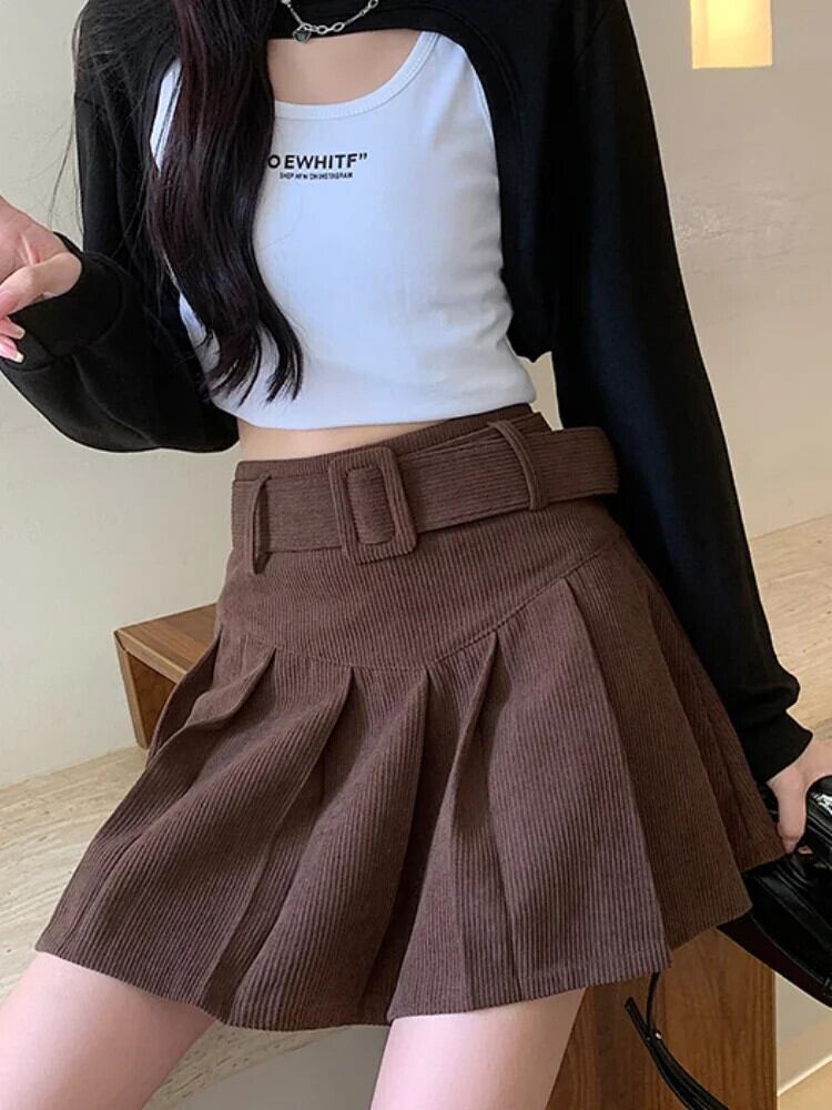 送料無料 アパレル JMPRS セクシーなコーデュロイプリーツミニスカートベルト付きレトロウエストホットガール A ラインスカート女性秋シックな Y2k 黒段 Faldas ブラック ハーネス Aライン AE122232246501398068 | mihatudai(みはつばい)ネットショッピングならmihatudai