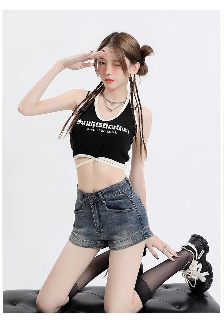送料無料 アパレル レトロなダメージ加工デニムショートパンツバージョン - ウエスト弾性ラップヒップホットパンツ女性 Y2k スリムフィットショートジーンズ エラスティック 伸縮 ショーツ ブルマー AE12223229323335516 | mihatudai(みはつばい)ネットショッピングならmihatudai