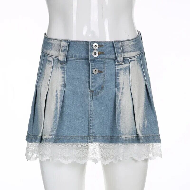 送料無料 アパレル JMPRS 甘いレースプリーツデニムスカート 2023 ローウエストミニスカートガール A ラインジーンズ Faldas Y2k 大人ガーリー スウィート キュート カジュアル Aライン AE122232221115609571 | mihatudai(みはつばい)ネットショッピングならmihatudai