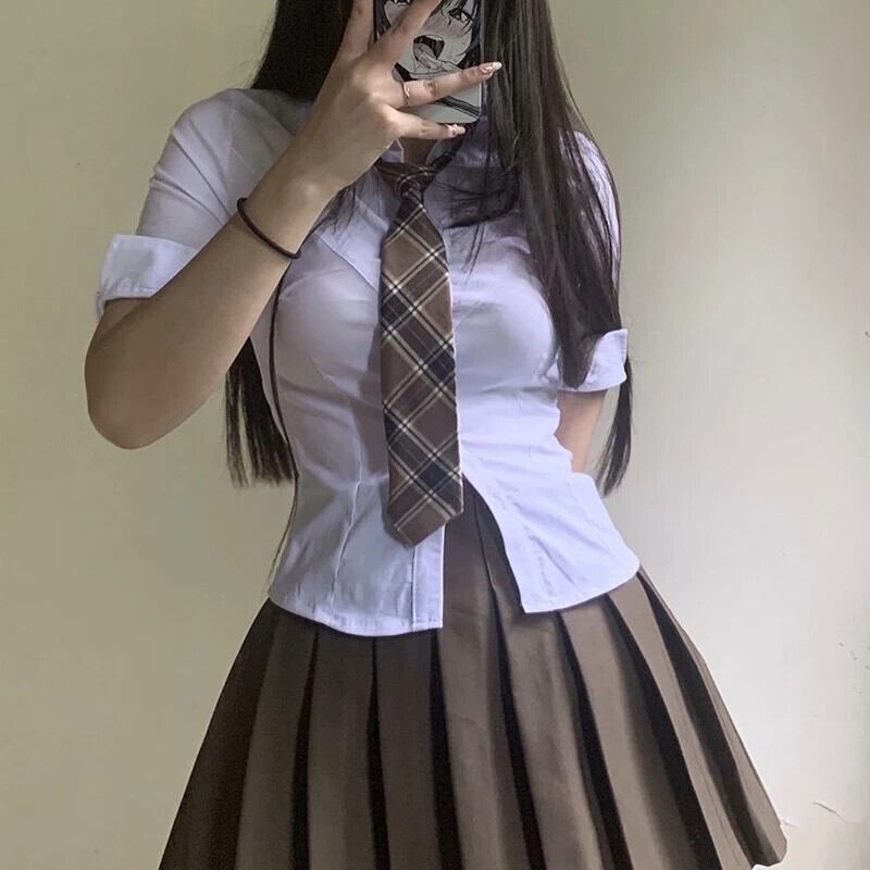 送料無料 アパレル セクシーな白シャツとネクタイ女性 Aummer プレッピースタイルスリムボタンアップガールズ JK チュニック ed 原宿トップスカミーサ ホワイト かわいい AE122232228085023331 | mihatudai(みはつばい)ネットショッピングならmihatudai