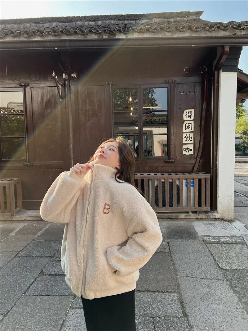 送料無料 アパレル JMPRS 冬暖かいラムウールコート女性ジッパー長袖ジャケットヴィンテージ Y2k レター生き抜くトップス ロング ウィンター 冬物 ビンテージ AE122232262459610017 | mihatudai(みはつばい)ネットショッピングならmihatudai