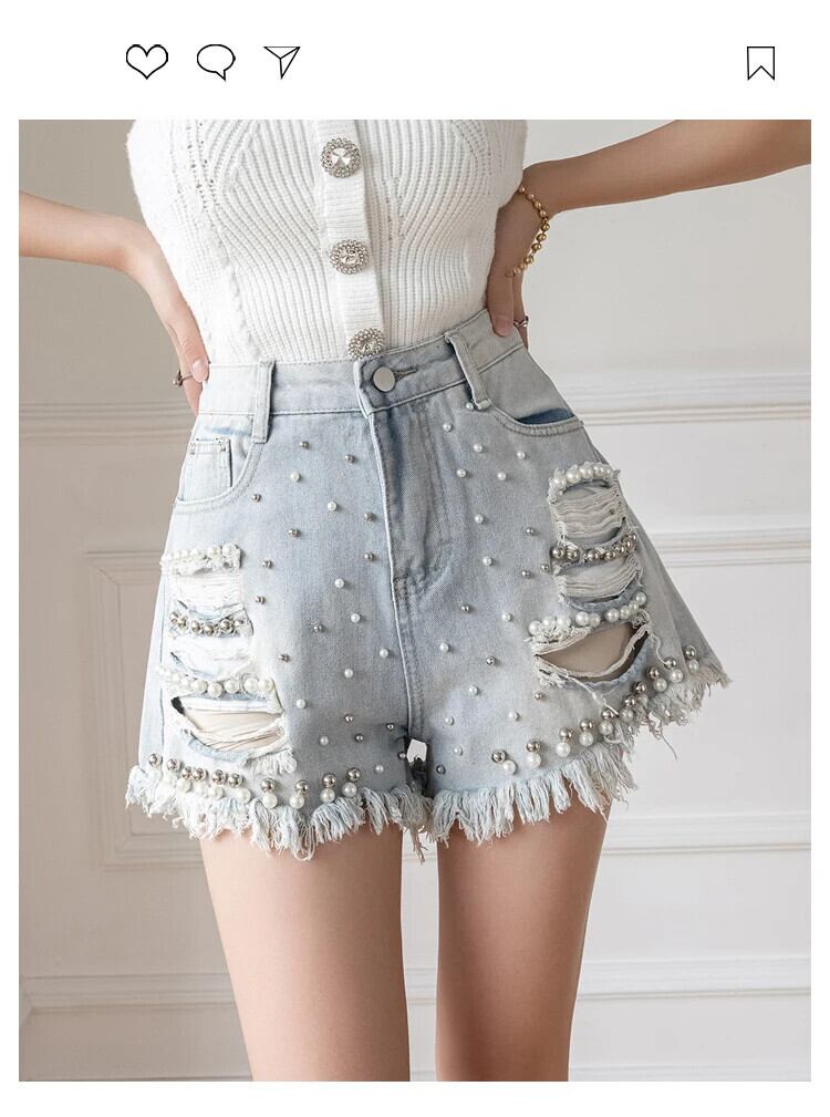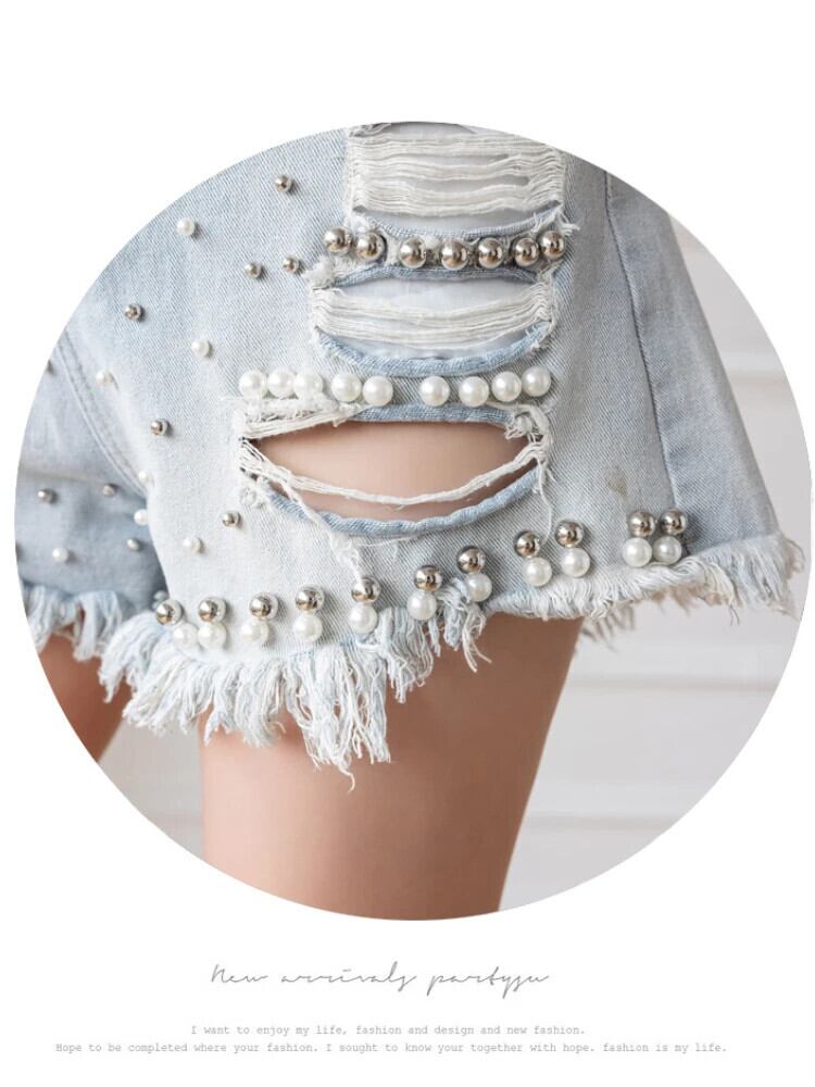 送料無料 アパレル JMPRS ヘビービーズショートデニムパンツ女性夏セクシーなホットウエストジーンズパンツ原宿中空アウトスリムフィットブルーショーツ かわいい ブルマー AE122232215698095281 | mihatudai(みはつばい)ネットショッピングならmihatudai