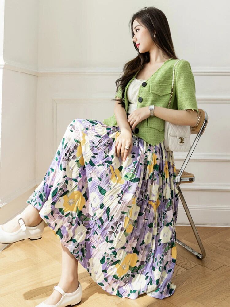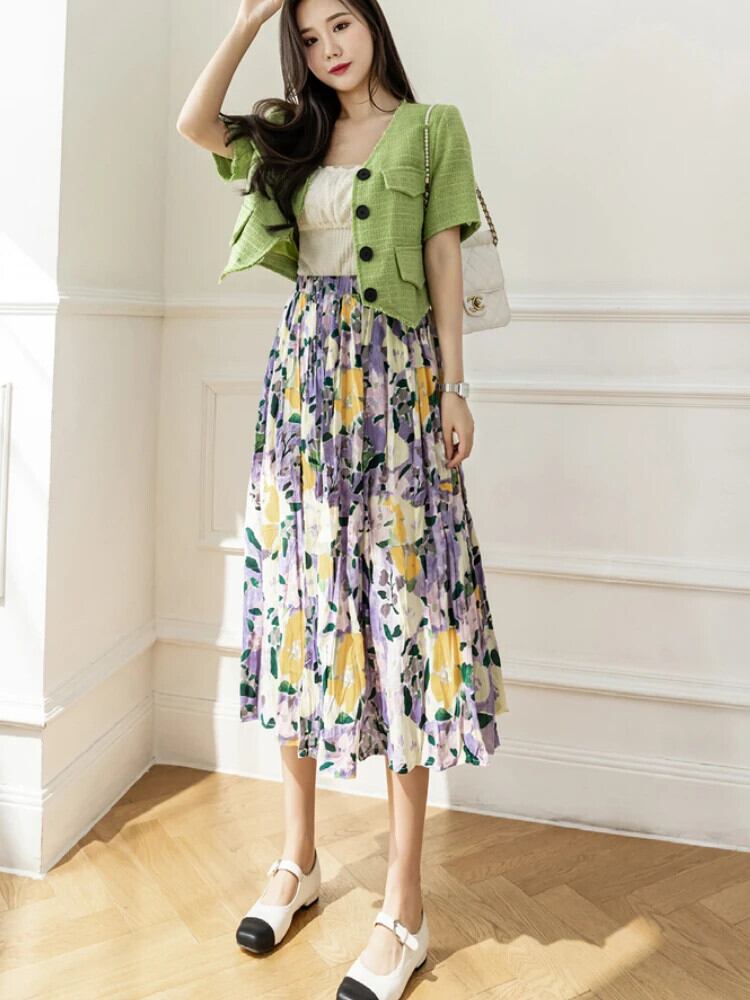 送料無料 アパレル JMPRS 春夏プリーツ花柄スカート女性ウエスト傘スカートスタイルミディ段 Faldas スプリング 春物 サマー 夏物 AE122232229238451292 | mihatudai(みはつばい)ネットショッピングならmihatudai