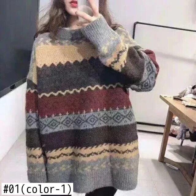 送料無料 アパレル ヴィンテージストライプルーズプルオーバー女性 O ネックセーター原宿シックな長袖ジャンパートップス ロング かわいい Oネック ビンテージ AE122232228783241447 | mihatudai(みはつばい)ネットショッピングならmihatudai