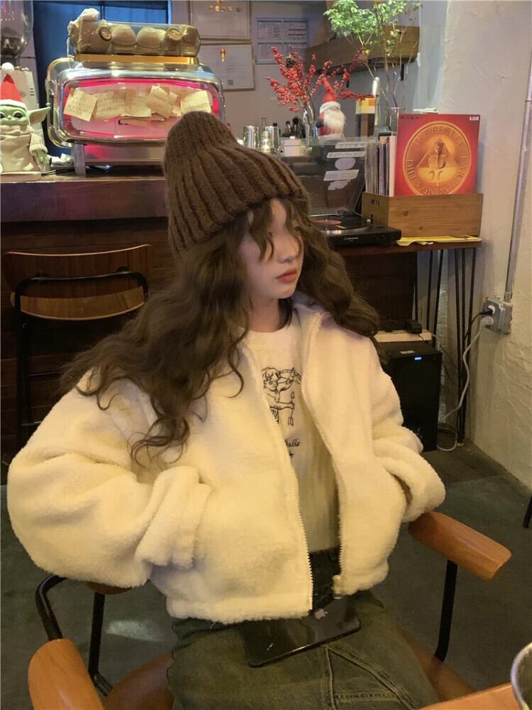 送料無料 アパレル JMPRS バージョンラムウールクロップドジャケット女性厚いジッパーショートジャケット冬ベージュすべて一致生き抜くコート ウィンター 冬物 AE122232242150046000 | mihatudai(みはつばい)ネットショッピングならmihatudai