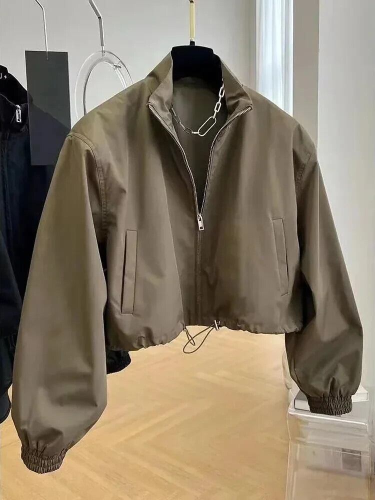 送料無料 アパレル 女性クロップドブラックジャケット秋スタンドアップカラー長袖コート Koren ジップアップジャケット生き抜くトップス ロング オータム 秋物 AE122232273608142194 | mihatudai(みはつばい)ネットショッピングならmihatudai