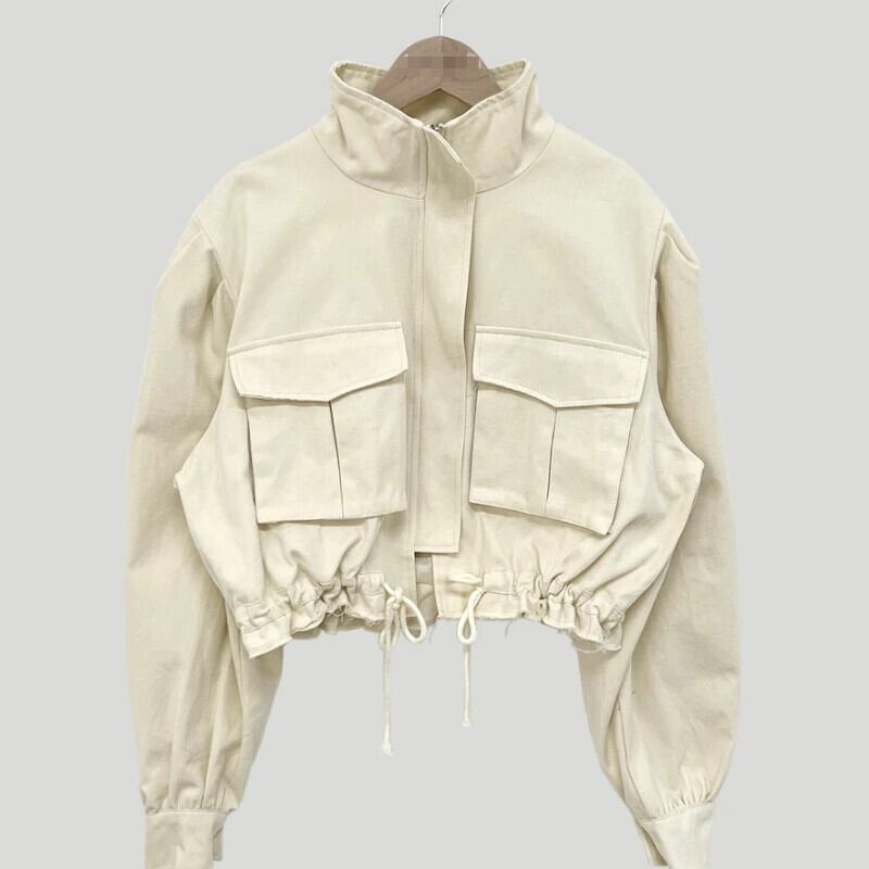 送料無料 アパレル シックなカーゴショートコート女性ヴィンテージ巾着ビッグポケット丈ジャケット女性秋春 2023 服トップス スプリング 春物 ビンテージ AE1222322374653290 | mihatudai(みはつばい)ネットショッピングならmihatudai