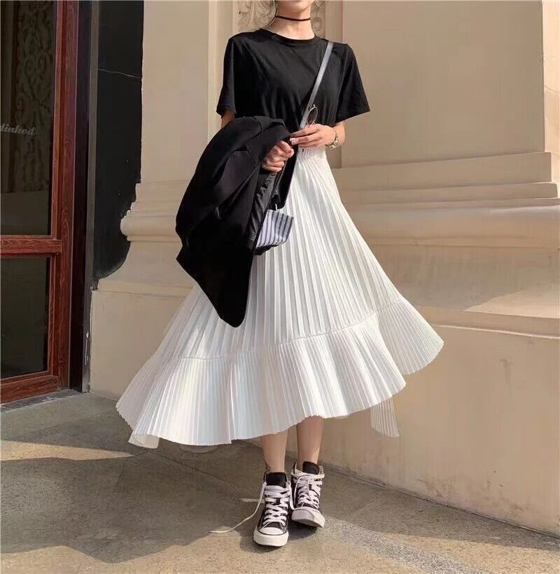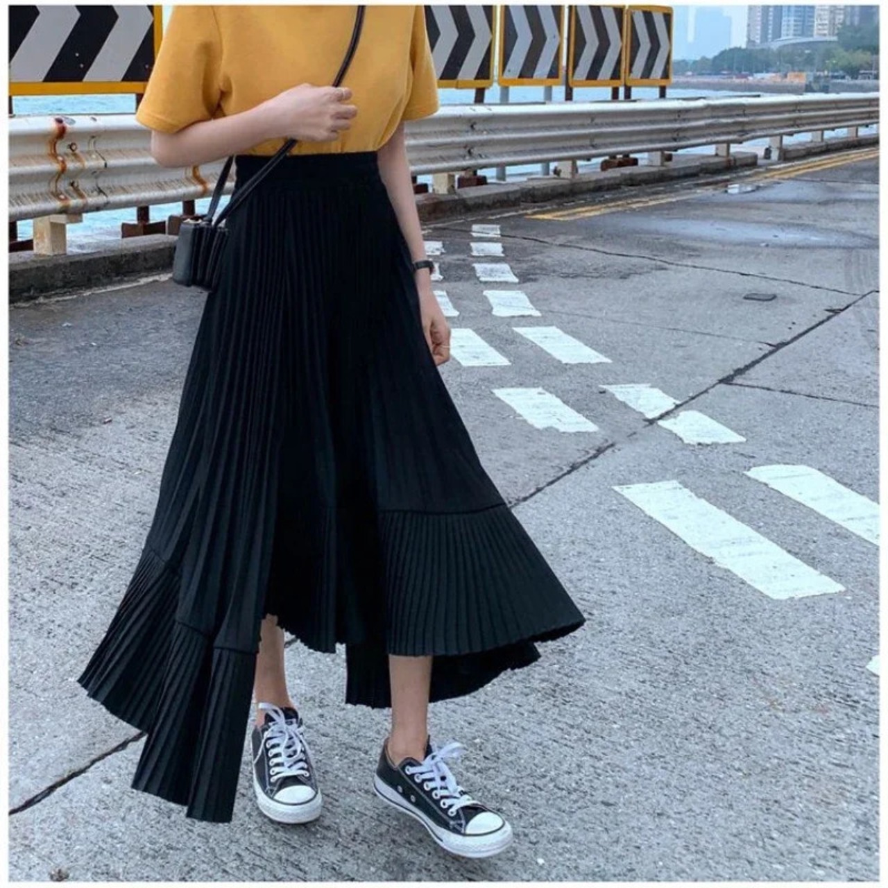 送料無料 アパレル ウエスト A ラインスカート女性不規則なプリーツスカート夏 2023 スリムフィット黒段 Faldas ブラック サマー 夏物 Aライン AE12223224873668863 | mihatudai(みはつばい)ネットショッピングならmihatudai