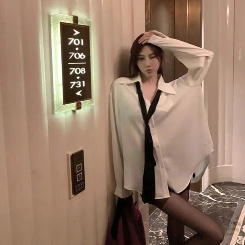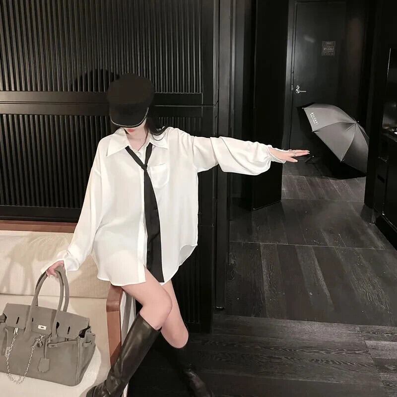 送料無料 アパレル JMPRS セクシーな白いシャツとネクタイ女性長袖シフォンルーズポケットクラブパーティーオールマッチトップス ロング ホワイト AE122232222879019479 | mihatudai(みはつばい)ネットショッピングならmihatudai