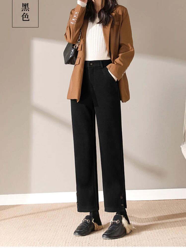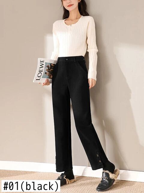 送料無料 アパレル JMPRS ウールストレートパンツ女性秋冬スリムフィット足首までの長さのズボンワイドレッグポケット黒パンツ ブラック オータム 秋物 ウィンター 冬物 AE122232248212524269 | mihatudai(みはつばい)ネットショッピングならmihatudai