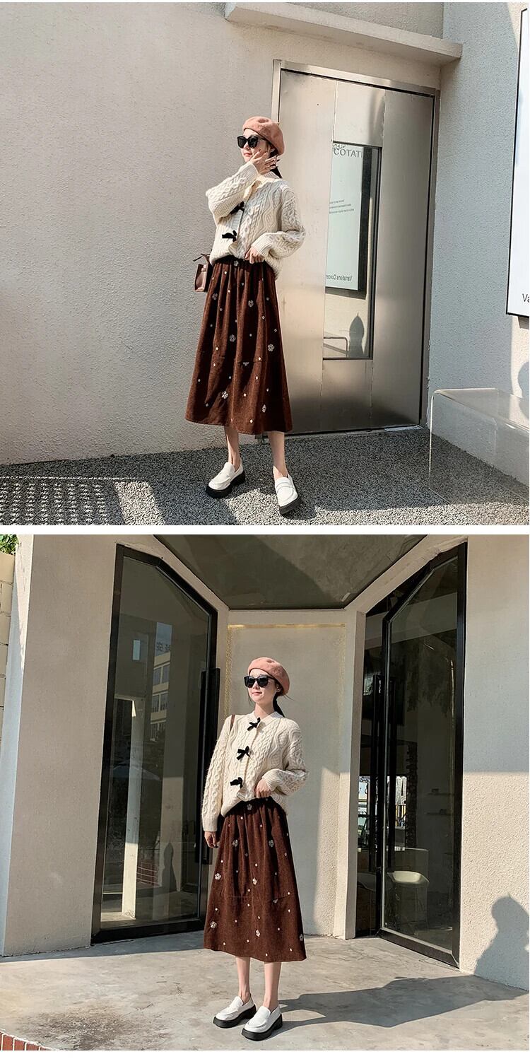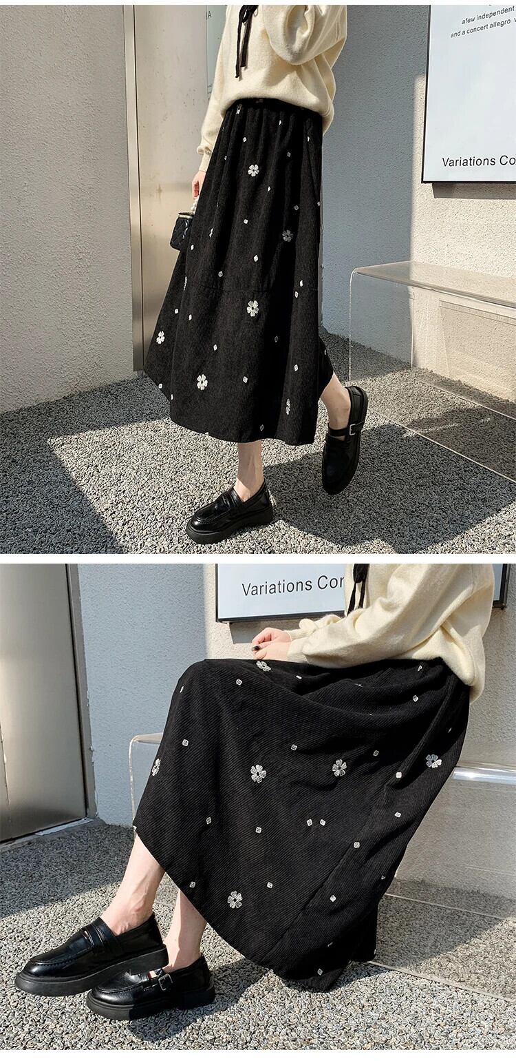 送料無料 アパレル Hoeben スタイルコーデュロイスカート女性花刺繍ミディスカート秋冬ヴィンテージウエストゴム黒段 Faldas ブラック エラスティック 伸縮 ウィンター 冬物 花柄 ビンテージ AE122232287335921888 | mihatudai(みはつばい)ネットショッピングならmihatudai