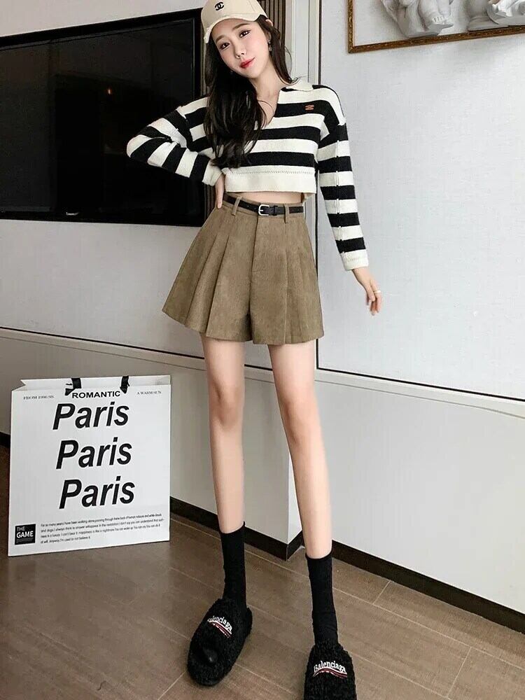 送料無料 アパレル レトロウエストコーデュロイプリーツショーツスカート女性春秋スリムフィット A ラインショーツオールマッチングショートパンツ スプリング 春物 ブルマー Aライン AE122232295700452373 | mihatudai(みはつばい)ネットショッピングならmihatudai