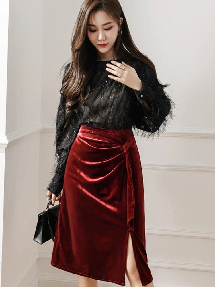 送料無料 アパレル レトロ不規則なスリットベルベットスカート女性秋ウエスト A ラインヒップラップスカート高級黒段 Faldas 2024 ブラック オータム 秋物 Aライン AE122232282656302322 | mihatudai(みはつばい)ネットショッピングならmihatudai